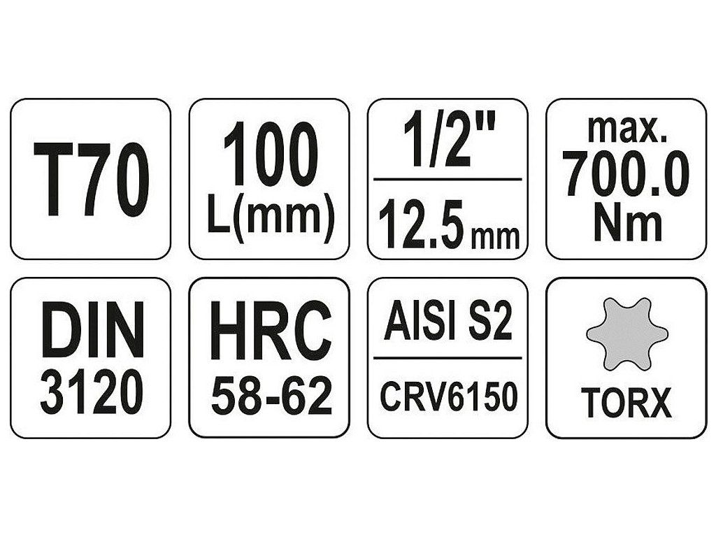 Hlavice s bitem TORX 1/2" T70 YATO - YT-04329
