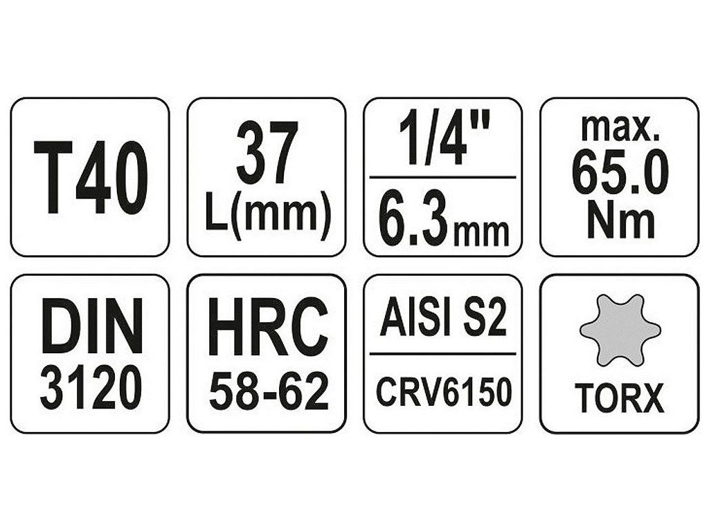 Hlavice s bitem TORX 1/4" T40 YATO - YT-04307