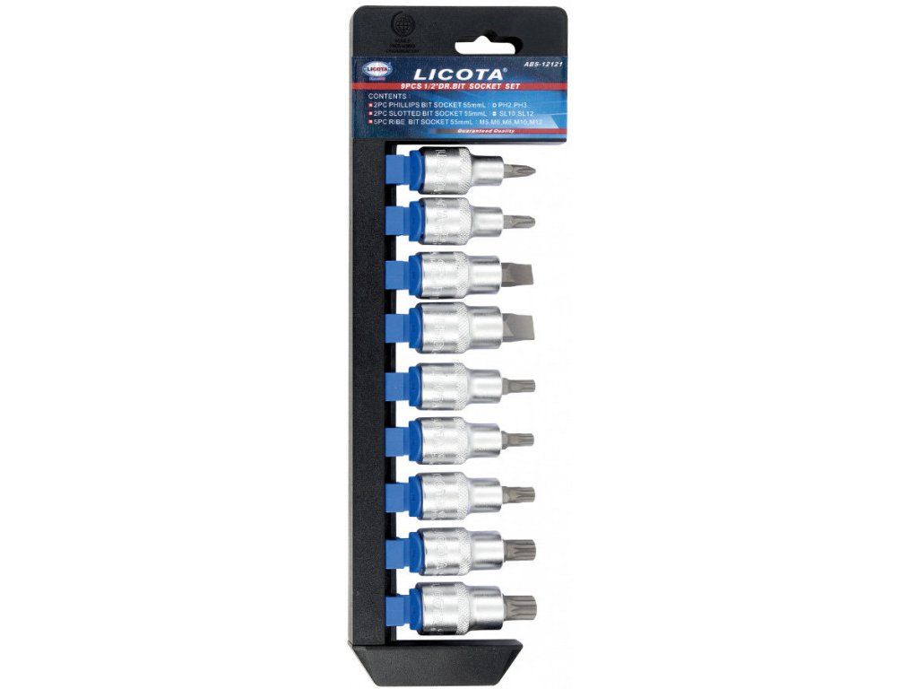 - Sada 9 nástrčných bitů 1/2" od značky LICOTA.