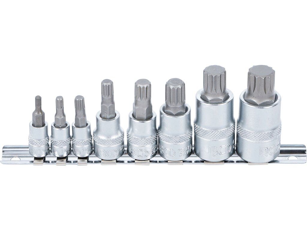 Sada 8 ks bitů XZN se čtyřhranem 1/4", 3/8" a 1/2".