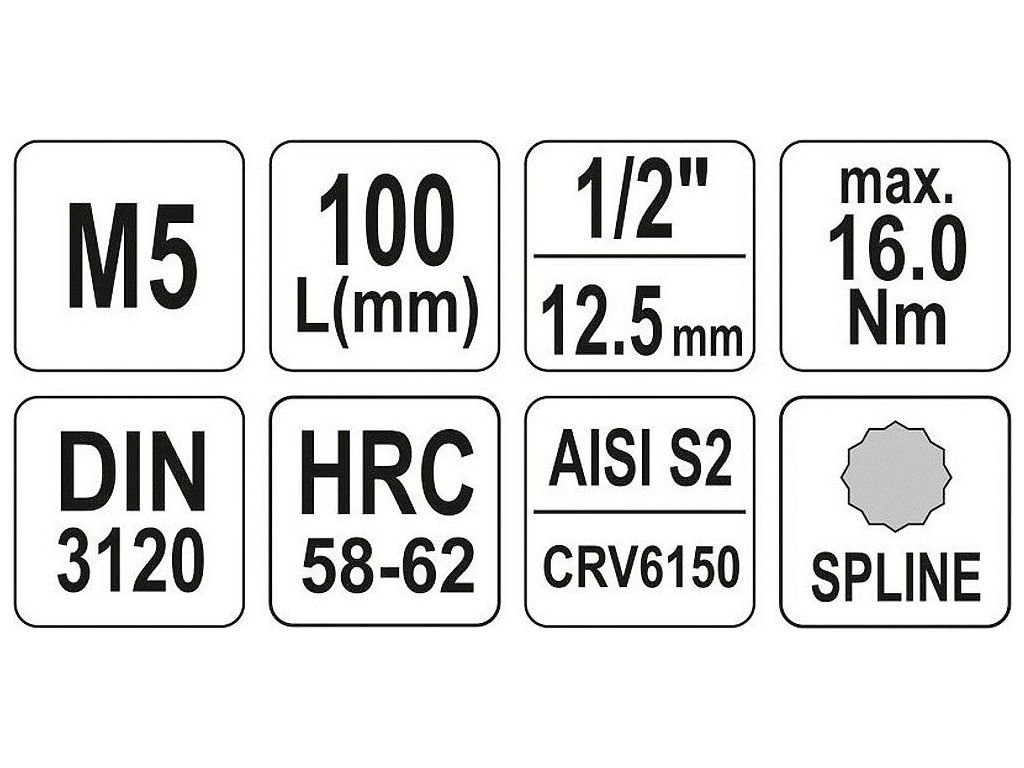 Profesionální šestihranný bit Vícezubý (SPLINE) pro 1/2" ráčnu, neboli nástrčná hlavice s bitem tisícihran (dvanáctihran / XZN) M5.