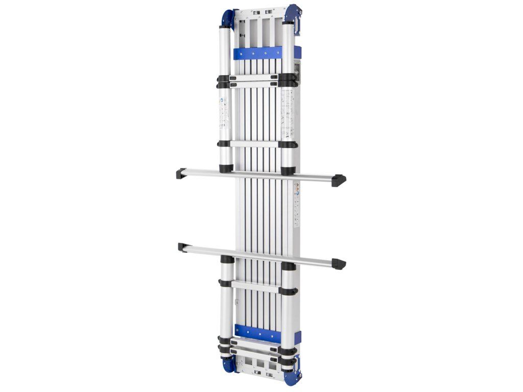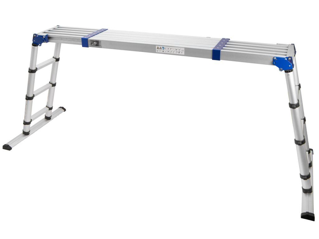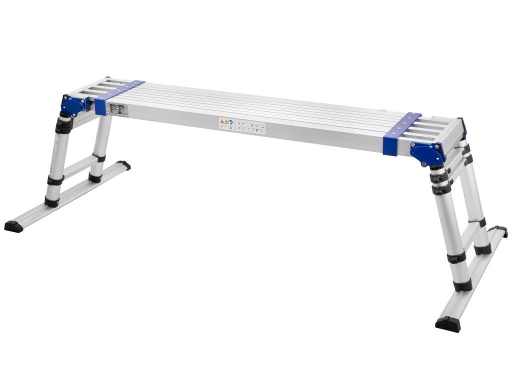Plošina je opatřena extra širokými příčnými traverzami, které přispívají k vysoké stabilitě na různých površích, a systémem pro rychlé nastavení délky i výšky.