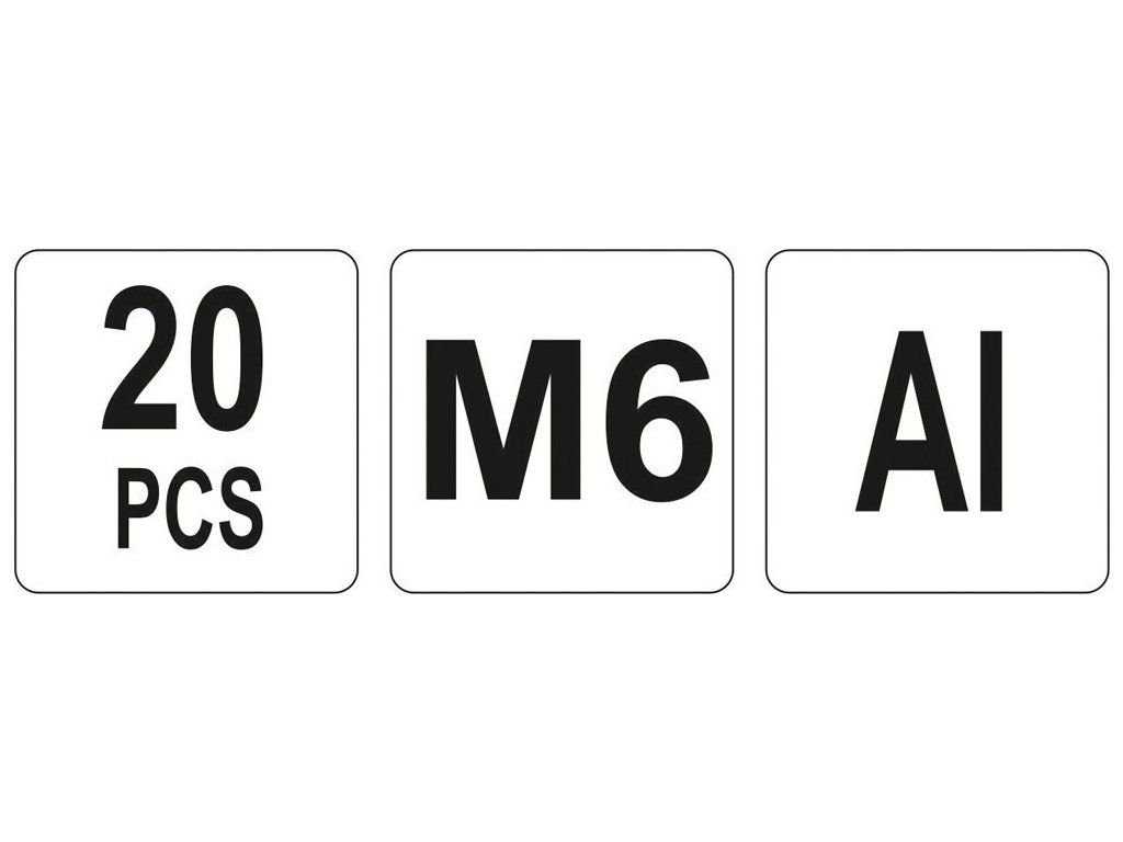 Hliníkové nýtovací matice M6, 20ks - YT-36454