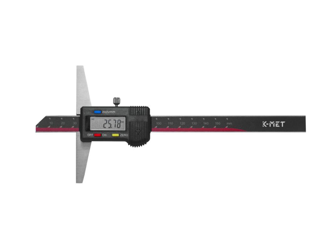 Digitální hloubkoměr K-MET je nepostradatelným nástrojem v každé strojírenské dílně, kontrolním oddělení i přesné výrobě. Díky rozlišení 0,01 mm splňuje i ty nejnáročnější požadavky na přesnost měření hloubky. Provedení bez nosu s rovnou měřicí základnou o hloubce 250 mm umožňuje stabilní ustavení na měřeném objektu a měření v těžko přístupných místech.