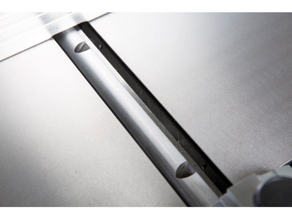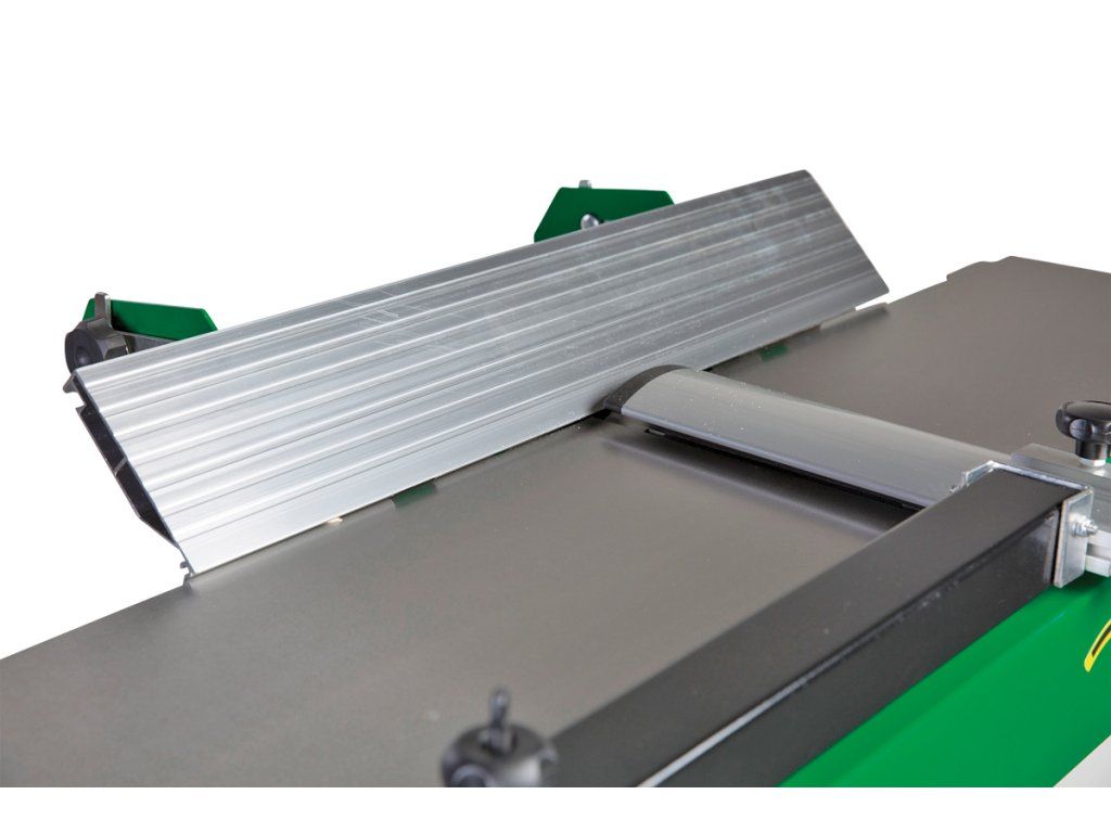 - Snadno nastavitelný hliníkový doraz pro srovnávání, lze jej naklopit v rozsahu 90° až +45°