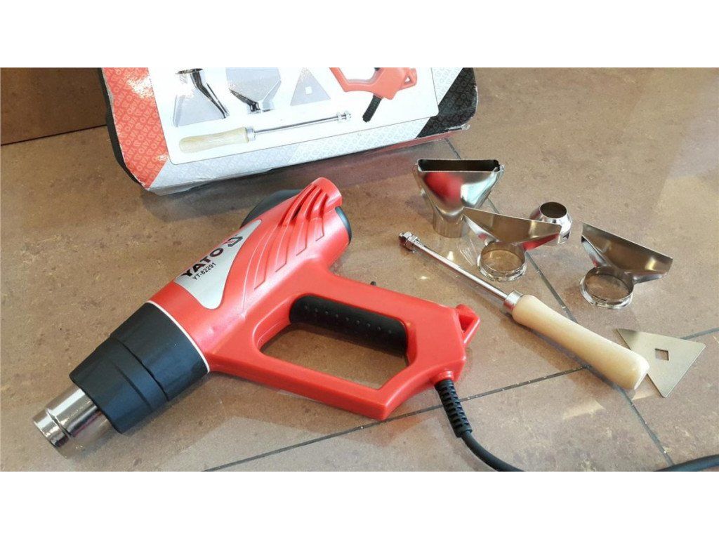 Klasická kvalitní horkovzdušná pistole Yato s dvěmi stupni výkonu. Je vybavena čtyřmi usměrňovacími tryskami a škrabkou pro opalování starých nátěrů.