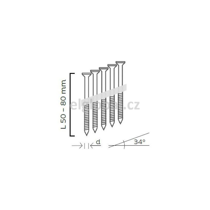 Hřebíkové vruty , páskované do pásu - plast, úhel 34 stupňů, bez plynové náplně , balení plast bucet