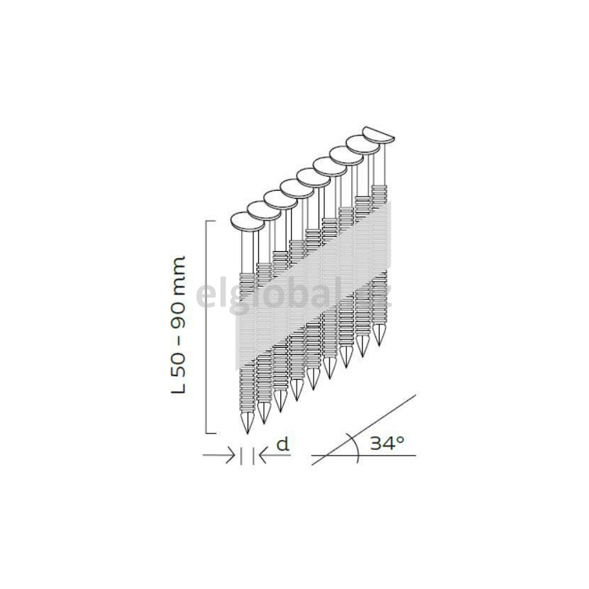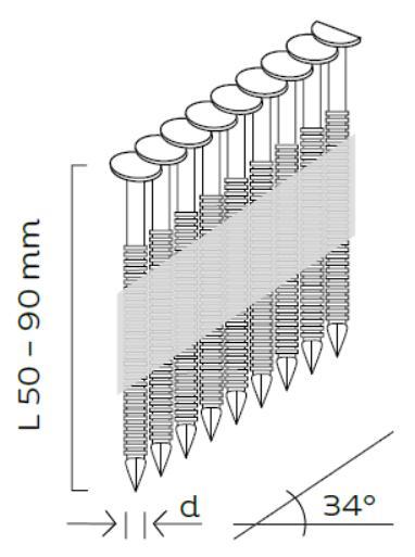 Hřebíky konvexní s čočkovou hlavou páskované plastem 34°  1000ks/ bal  NA OBJEDNÁVKU