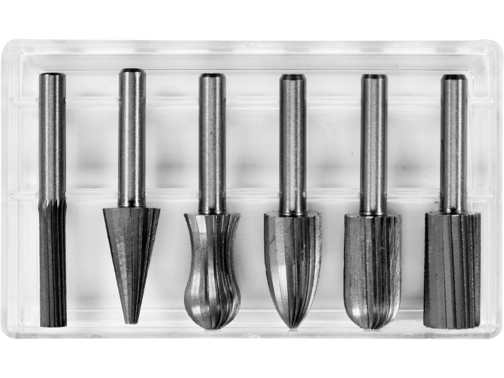 Sada 6 ks rašplí určených pro obrábění oceli a hliníku.
