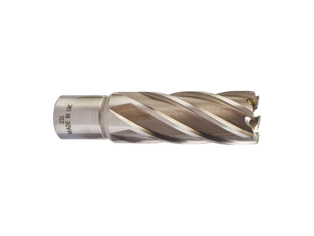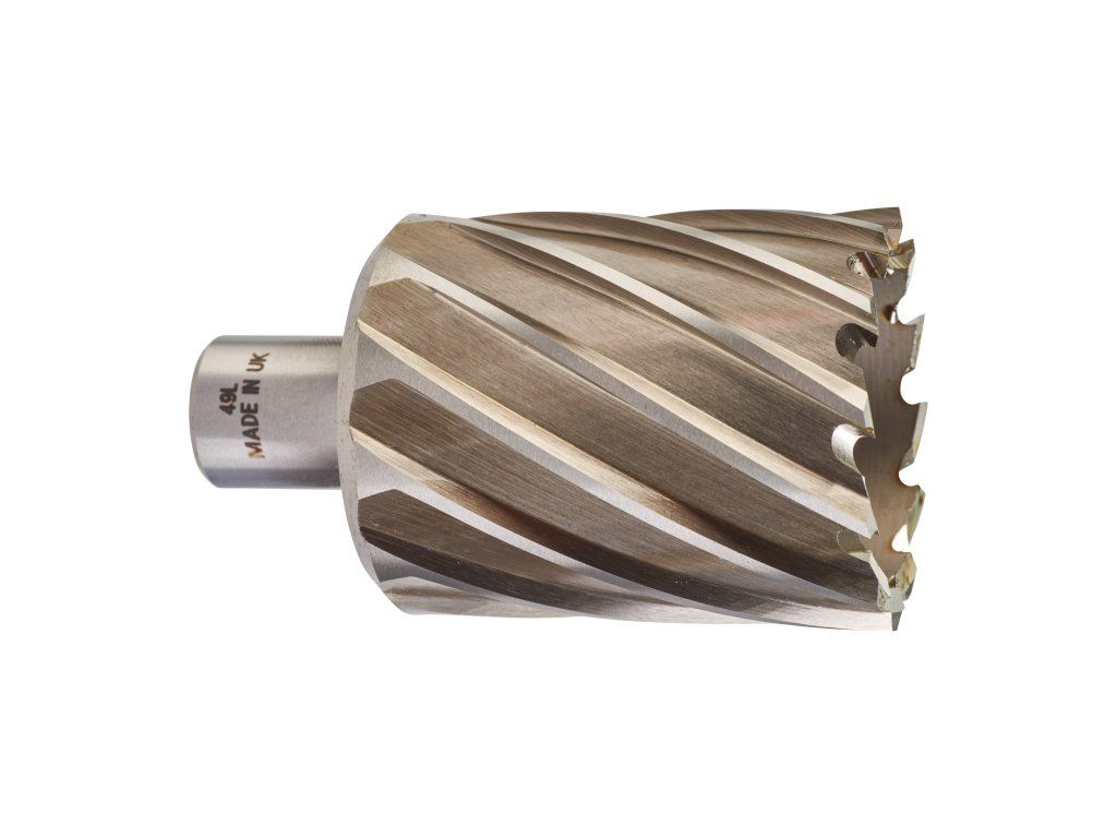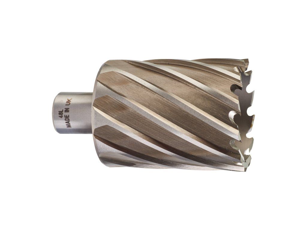 - Delší životnost ─ Kruhové frézy, které řežou jen obvod díry, vyvrtají více děr na jedno nabroušení než standardní vrták. 6 mm silná stěna frézy spolu se speciální geometrií zubů zabezpečují vyšší odolnost a znižují na minimum riziko lámání z přetížení.