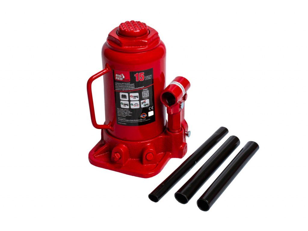 Usnadnění zvedání zajišťuje dlouhá pozinkovaná rukojeť. Nadměrnému roztažení ramene a poškození válce zabraňuje bezpečnostní ventil.