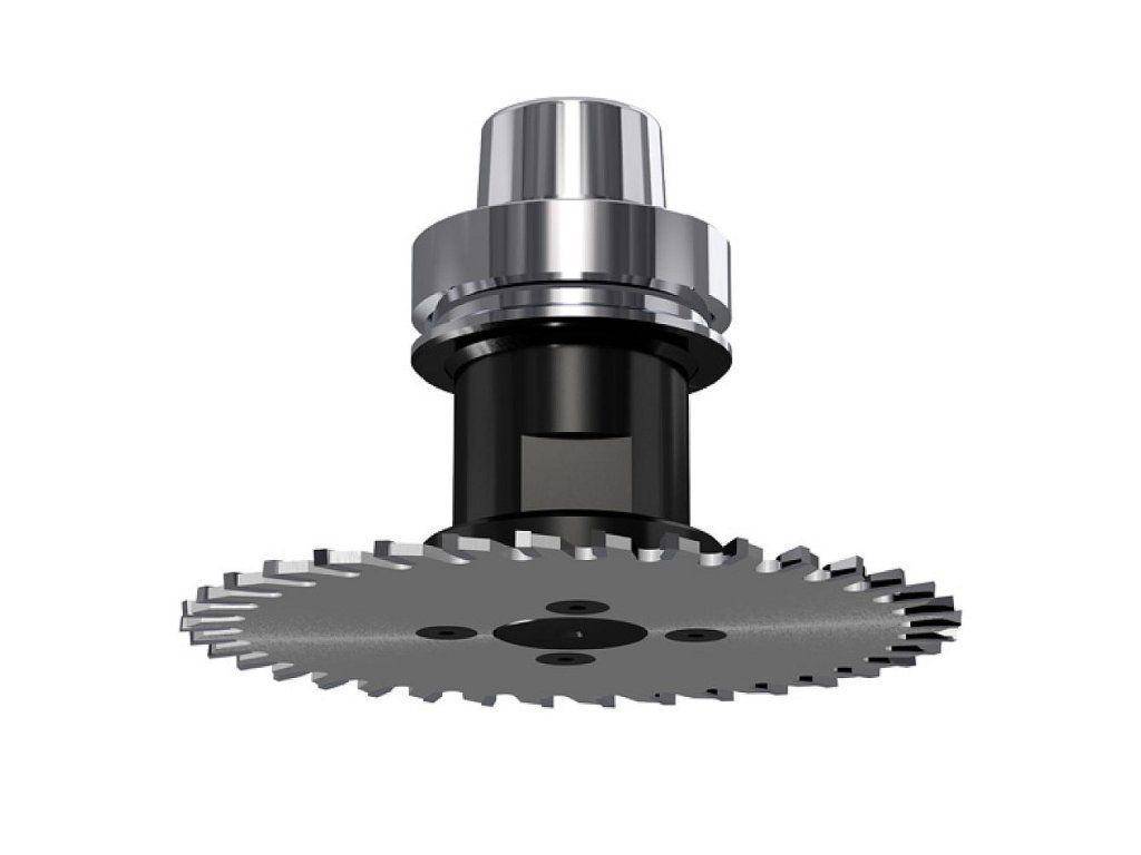 Upínací CNC hlava pro pilové kotouče. Ideální pro drážkování nebo formátování pomocí CNC.