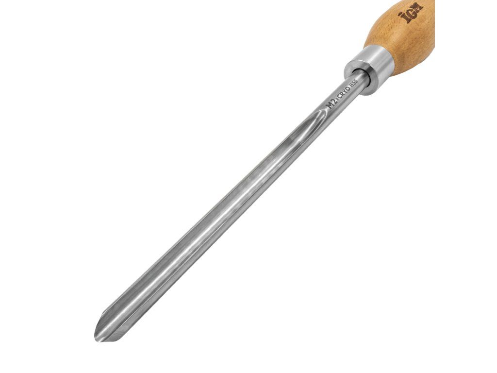 IGM Cryo Soustružnické dláto miskové se používá při dutinovém soustružení pro tvorbu dutých tvarů, misek a tvarování svahu. Je vhodné jak pro začátečníky, tak i zkušené soustružníky. Čepel 10x215 mm z HSS oceli M2 je kryogenicky zpracovaná, což zaručuje dlouhou životnost a mnohonásobně vyšší zachování ostří než u běžných dlát. Kryogenicky zušlechtěná ocel M2 na tvrdost 63-65 HRC je velmi odolná proti vysokým teplotám a nespálí se ani při soustružení velmi tvrdých, vysušených dřevin. Masivní ergonomická rukojeť z bukového dřeva je pevná pro komfort a jistotu při práci.