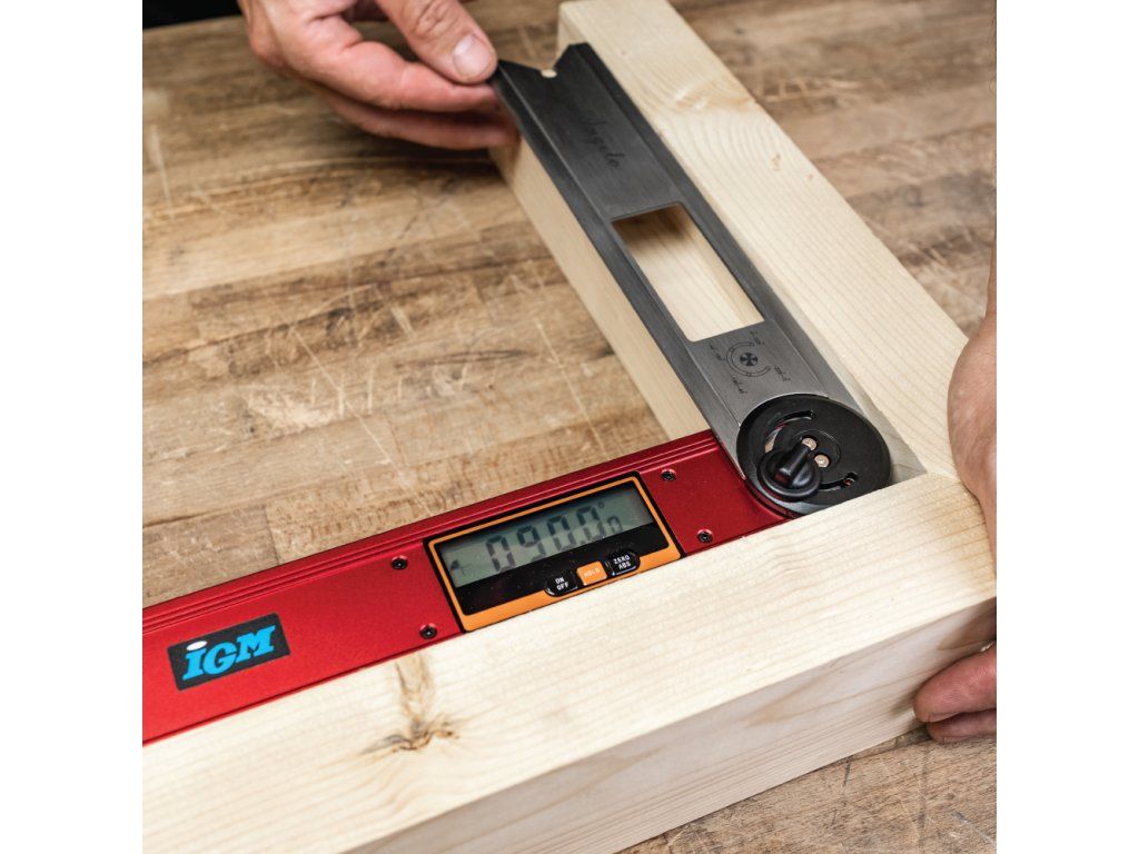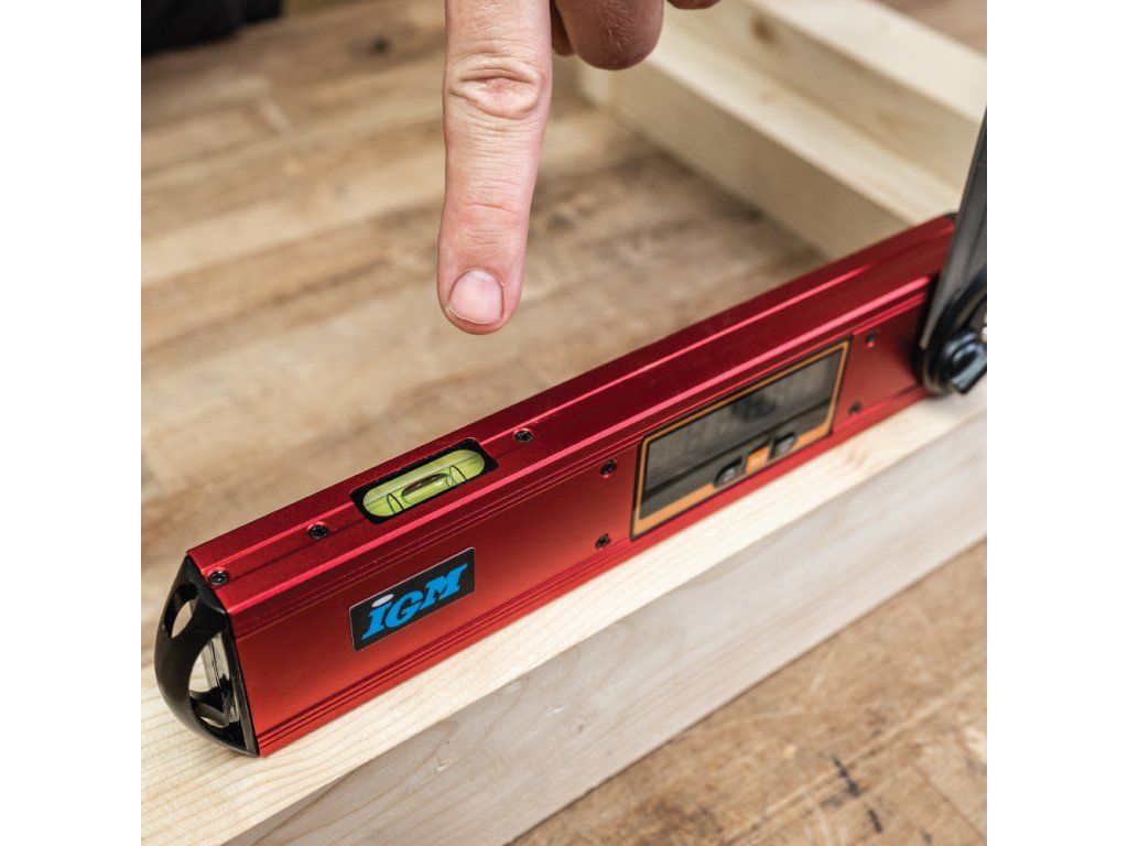 Digitální úhelník IGM s pohyblivým hliníkovým pravítkem a integrovanou vodováhou je nepostradatelným pomocníkem pro všechny truhláře, tesaře, kutily a další řemeslníky. Díky funkcím absolutního i relativního měření sklonu a možnosti aretace pohyblivého ramene můžete snadno přenášet úhly při výrobě i montáži. Grafické zobrazení kvadrantů na displeji umožňuje rychlou vizuální kontrolu polohy ramene. Robustní konstrukce z hliníku a kompaktní délka 270 mm zajišťují snadnou manipulaci i v omezeném prostoru. Ideální nástroj pro každého, kdo pracuje s přesnými spoji, sklony nebo rysy řezu.