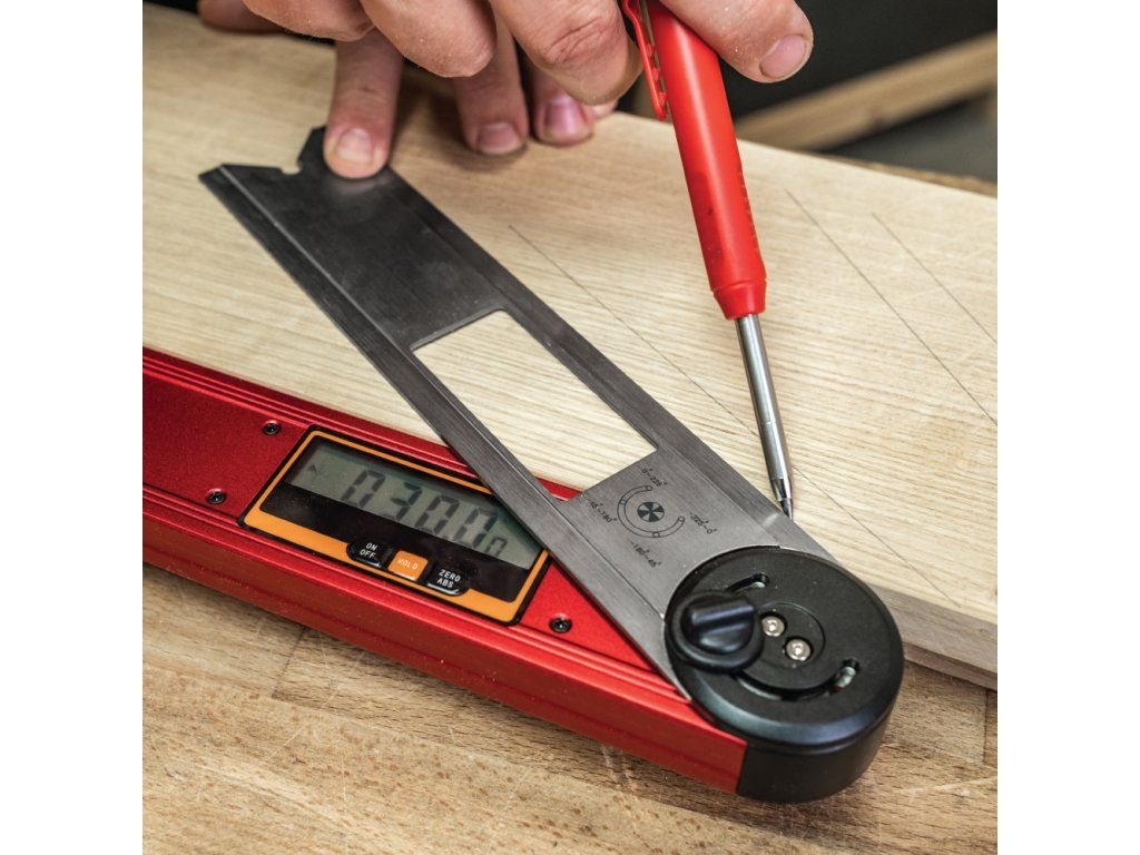 Přesný digitální úhloměr s vodováhou pro truhláře a řemeslníky. Rozsah až 360° s rozlišením 0,05° a funkcí absolutního a relativního měření. Tento přístroj byl navržen pro náročné použití v dílně, na stavbě i v terénu.