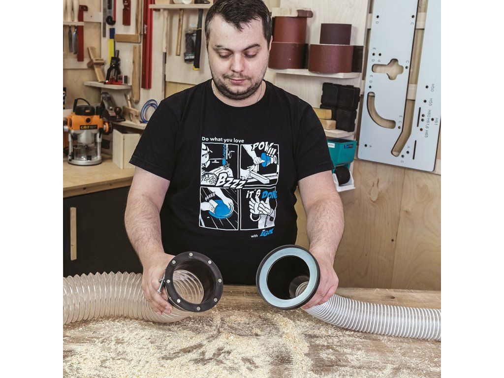 Magnetický konektor s redukcí k propojení odsávacích hadic o průměru 100 a 63 mm. Osazený 8 magnety a magnetickým kroužkem pro spolehlivý spoj hadic z odsavače a separátoru pilin.