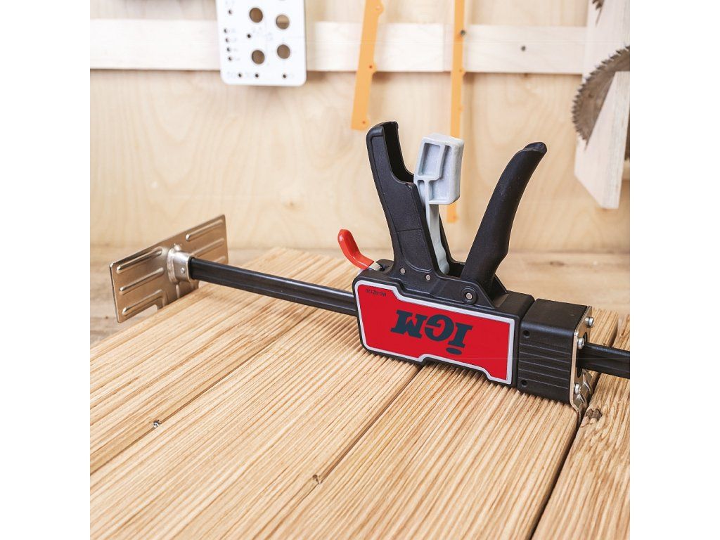 IGM Ruční zvedák je všestranný nástroj,který najde využití při jakémkoli druhu práce.S nosností 120 kg vám pomůže vyrovnat spotřebiče a zvednout těžký nábytek nebo stavební materiál jako trámy či sádrokartonové desky do výšky až 310 mm.Zvedák můžete ovládat pouze jednou rukou,což se hodí při instalaci oken,dveří a kuchyňských korpusů,kdy běžně potřebujete druhou ruku pro přidržení dílce.Po montáži základny na opačnou stranu vodicí tyče lze využít i jako svěrka pro upínání.Zvedák můžete použít i pro rozpínání například při montáži podlah.Stisknutím červené páčky se zvedák rychle spustí.Pokud potřebujete materiál spustit postupně a hlavně opatrně,využijete šedou páčku pro pozvolné spuštění.