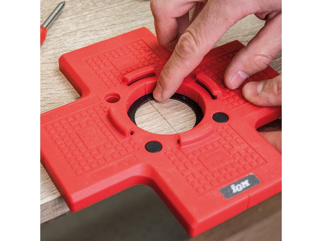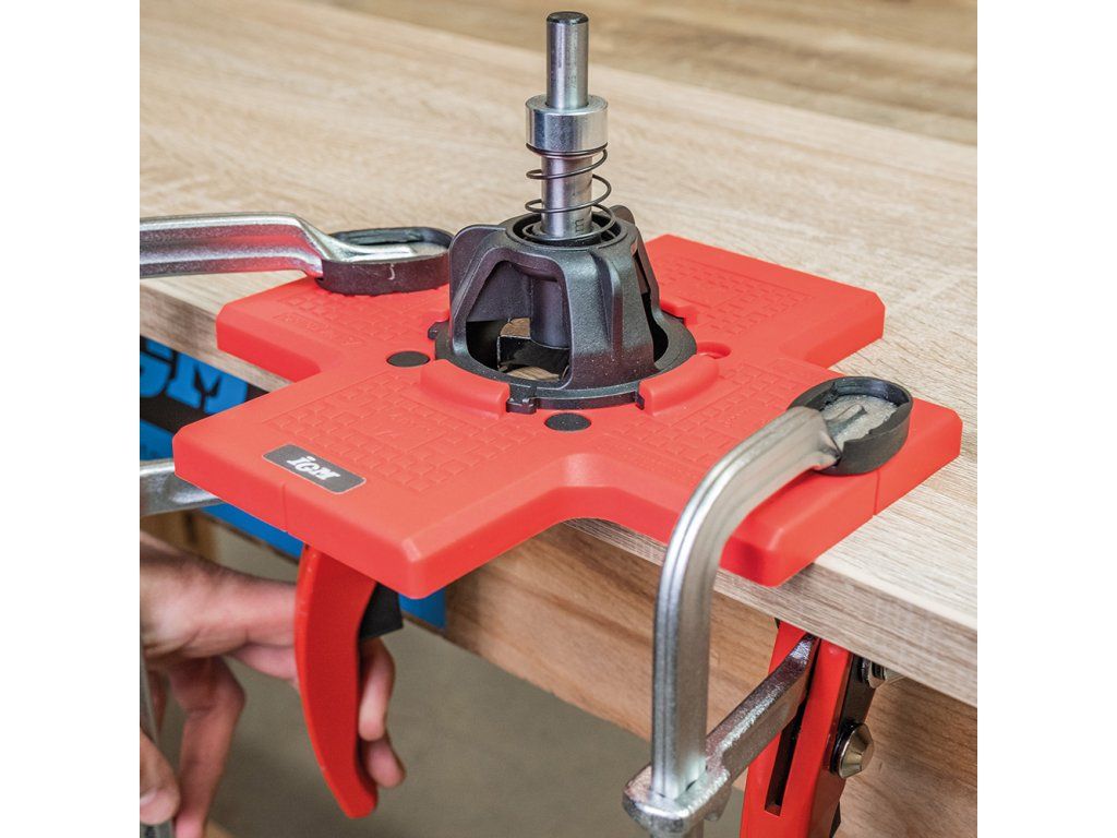 Šablona pro vrtání misek pantů zaručuje rychlou a přesnou instalaci 35mm pantů bez zdlouhavého měření. Nastavitelné odsazení 3–6 mm od hrany dvířek. Magnetická šablona pro přesné vrtání otvorů pro vruty usnadní montáž pantů značky Blum, Strong i Hettich. Ideální pro nábytkáře.