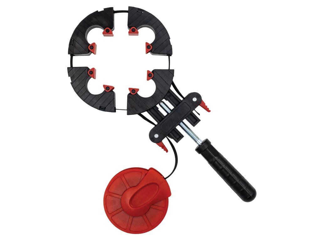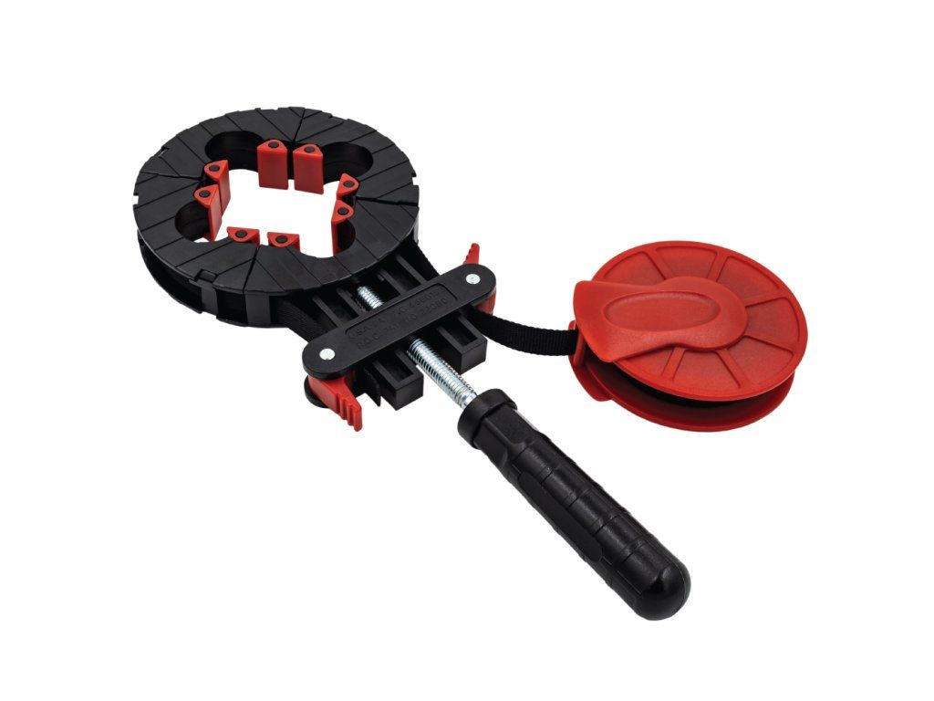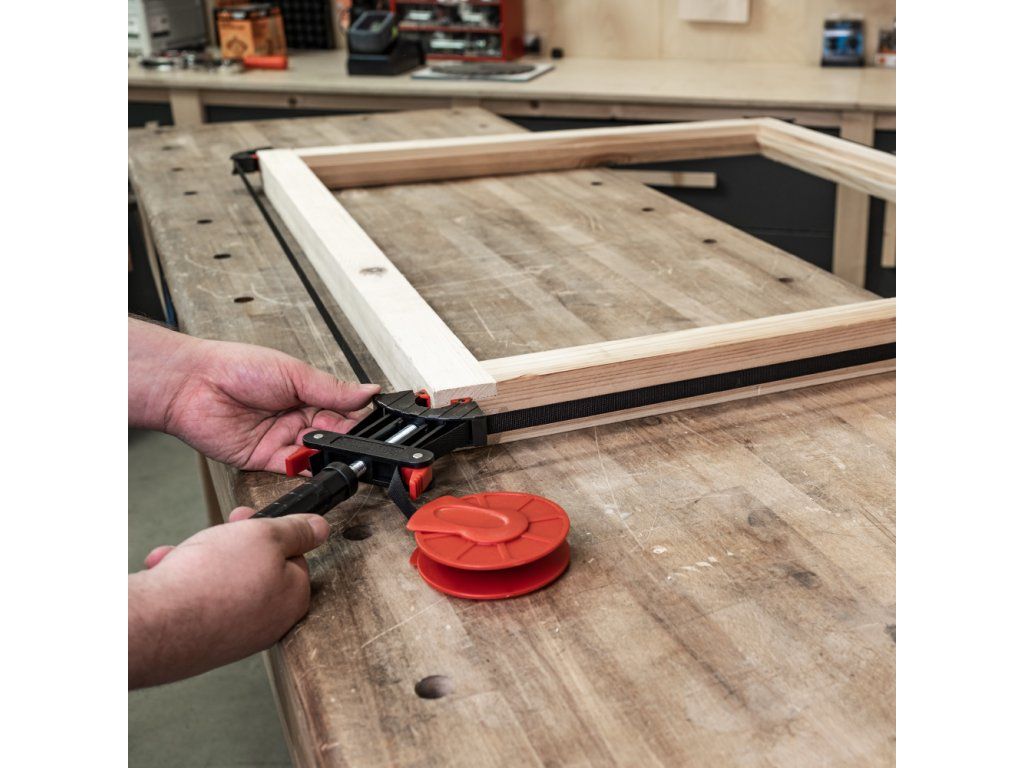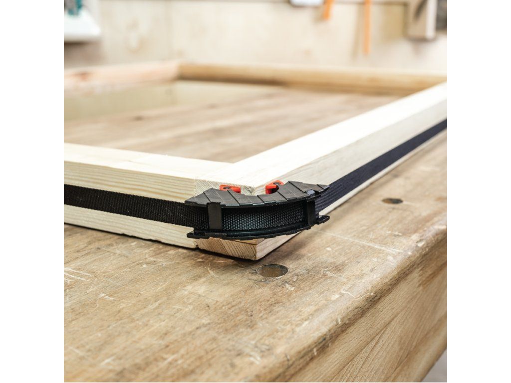 Skvělá svěrka pro výrobu rámů a rámečků v malé dílně nebo pro kutily je vybavena 4 metrovým nylonovým popruhem, navijákem, šroubovacím napínacím zařízením a čtyřmi výkyvnými rohovými segmenty pro ideální stažení rámu. Tímto přípravkem stáhnete pravoúhlé rámy nebo i rámy nepravidelných tvarů. Lepený rámeček po nanesení lepidla umístíte jednoduše do přípravku a stáhnete. Pro rámy o velikosti od 58 x 58 mm do velikosti rámu 600 x 600 mm.
