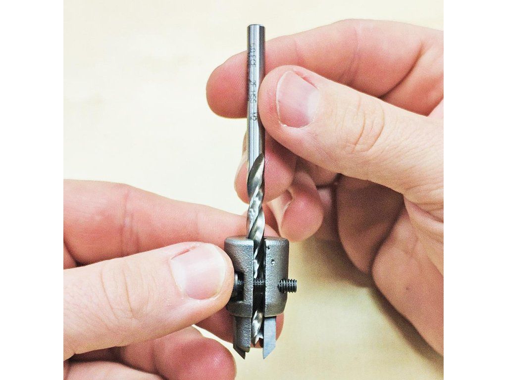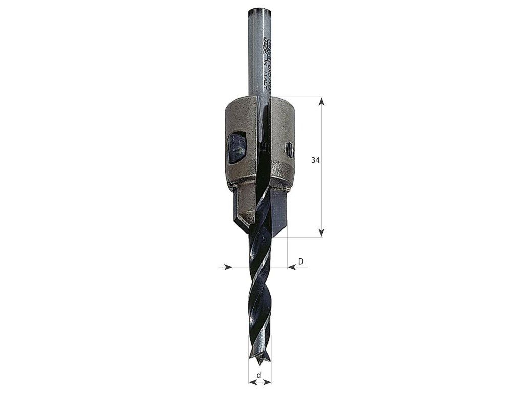 Záhlubník s HM - tvrdokovovým břitem s možností upnutí vrtáků průměru 3 až 7 mm.