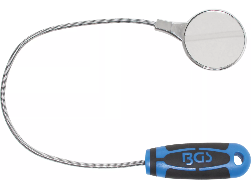 Inspekční zrcátko od značky BGS má průměr 55 mm a je vybaveno ohebnou tyčkou pro snadný přístup do obtížně dostupných míst.