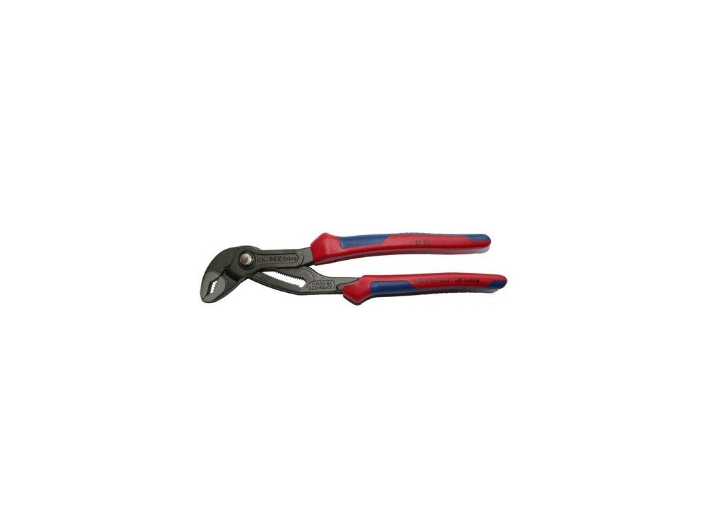 87 02 180 KNIPEX Cobra® HiTech instalatérské kleště Nastavení stisknutím tlačítka přímo na sevřené součásti: rychlá a pohodlná manipulace Jemné seřízení: umožňuje optimální přizpůsobení různým velikostem součástí a pro ruce příznivé postavení rukojeti. Pro počet nastavitelných pozicí viz tabulku. Spolehlivé zaskočení čepu kloubu: žádné neúmyslné přenastavení Posuvný průchozí čep kloubu: vysoká stabilita díky dvojitému vedení Samosvorné na trubkách a maticích: žádné sklouzávání na sevřené součásti, práce šetřící síly a vynaložení menší síly Plochy čelistí se speciálně kalenými zuby, tvrdost zubů asi 61 HRC: trvale spolehlivé uchopení díky vysoké odolnosti proti opotřebení Nastavování jednou rukou Ochrana proti sevření zabraňují poraněním způsobeným uskřípnutím Příznivé působení pák: optimální přenos sil chromvanadová elektroocel, kovaná, kalená v oleji Hlava: Leštěno Rukojeti: S dvoubarevnými vícesložkovými návleky rukojetí nastavitelných pozic: 11 Délka: 180 mm Hmotnost: 196 g Podrobnější informace ke zboží naleznete v katalogu KNIPEX v sekci "Katalogy"Doplňkové parametry