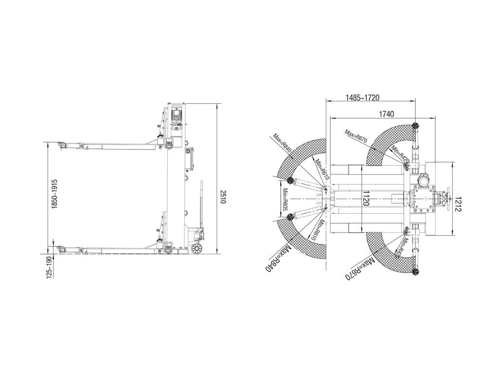 Výška sloupu při pojíždění: 2510 mm