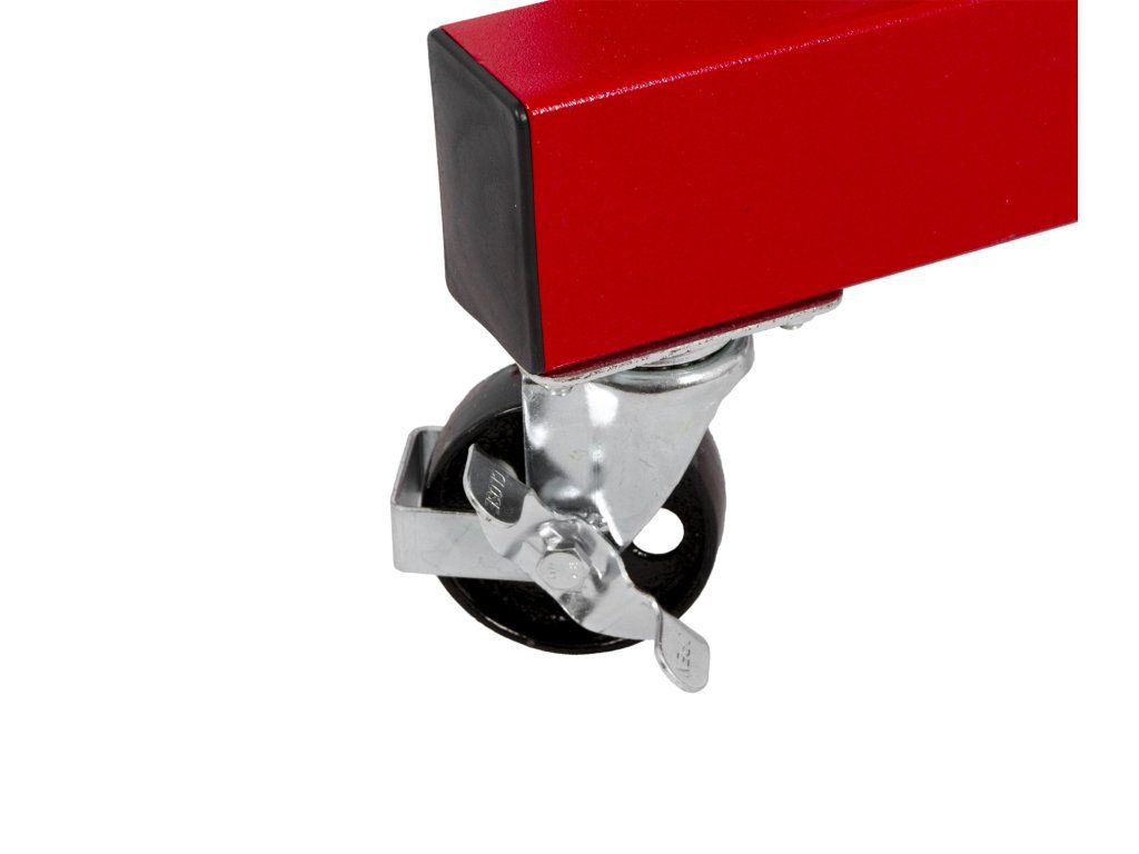 Vysokou stabilitu zajišťuje 6 otočných koleček, rameno je výsuvné a zakončené háčkem s pojistkou.