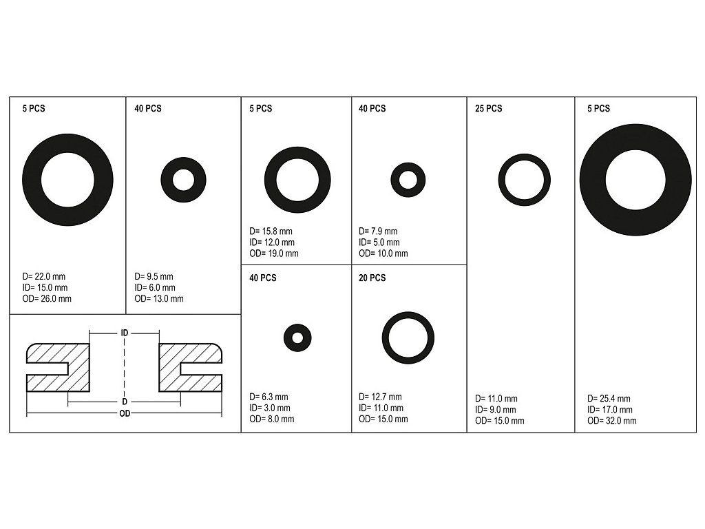 Kabelové průchodky gumové, sada 180 ks - YT-06878
