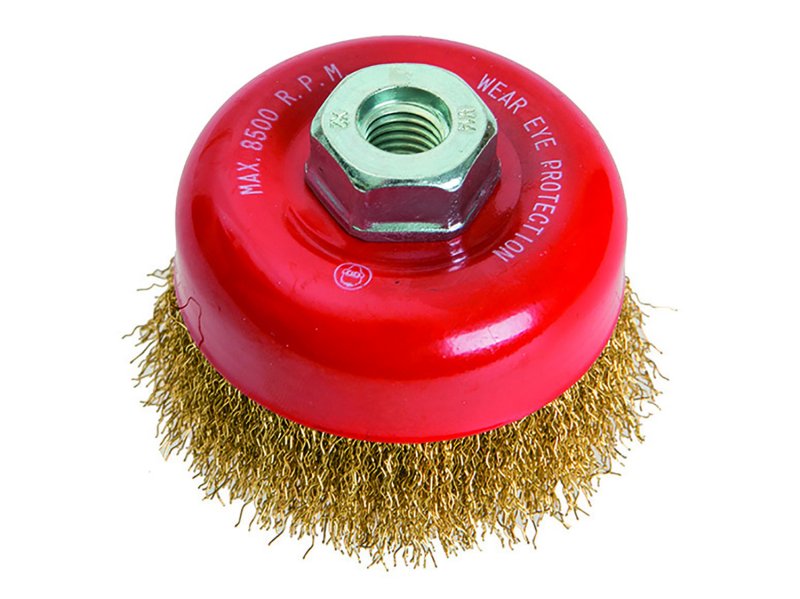 Parametry produktu  Kartáč rotační hrnkový FESTA vlnitý mosaz 100mm M14