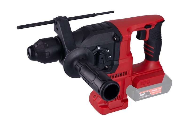 kladivo sekací a vrtací AKU SDS+ 2,8 J varianty nastavení - SEKÁNÍ, VRTÁNÍ S PŘÍKLEPEM, VRTÁNÍ BEZ PŘÍKLEPU, NASTAVENÍ SMĚRU SEKACÍHO NÁSTROJE pneumatický příklep rychlejší a efektivní sekání a vrtání do zdiva, betonu, sekání obkladů a dlažby, apod. zpětný chod pro snadné vytažení vrtáku při zaseknutí v materiálu, přepínání vrtání s nebo bez příklepu, nastavení dorazu - hloubky vrtání otáčky 0 - 1150 min -1, hlava SDS +, hmotnost bez baterie 2.7kg pohodlná pogumovaná ergonomická rukojeť, umístění ovládacích prvků uzpůsobené pro pravou i levou ruku FESTA SHARE 20 V - AKU sekací a vrtací kladivo je součástí skupiny výrobků s možností využívat Li-ion batarie 2.0, 4.0 a 8.0 Ah ve všech strojích takto označených Li-ion technologie použitá v bateriích FESTA Power x tools nabízí možnost dobíjet baterie kdykoliv - bez snižování jejich kapacity, u Li-ion baterií také dochází k jen velmi pomalému samovybíjení pro běžnou práci je baterie s kapacitou 4.0 Ah (28081) dostačující - nabíjecí čas cca 60 min., pro práci s předpokladem větší zátěže, doporučujeme použít baterii s kapacitou 8.0 Ah (28083) - nabíjecí čas cca 120 min dodáváno bez baterie a nabíječky, lze objednat baterie 2.0 Ah - 28080 / 4.0 Ah - 28081 / 8.0 Ah - 28083, nabíječka 2.4 A - 28085, nabíječka 4.0 A - 28086