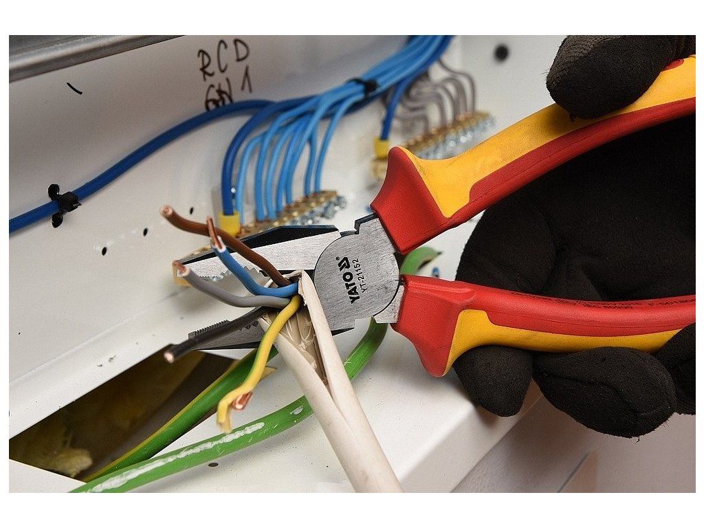 Kleště mají na rukojetích vícevrstvou izolaci s certifikátem VDE, která umožňuje použití při práci s napětím do 1 kV.