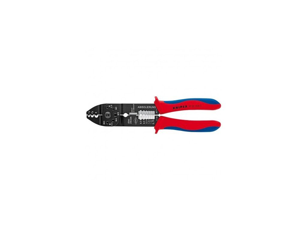 97 21 215C Lisovací kleště K stříhaní kabelů, odizolování drátů a lisování izolovaných a neizolovaných kabelových ok a konektorů a otevřených konektorů S otvory se závitem k stříhání měděných nebo mosazných závitových kolíků s M 2,6; 3,0; 3,5; 4,0 a 5,0 mm speciální ocel, vysoce pevná Hlava: Brunýrované Rukojeti: S plastovými návleky rukojetí Použití: Neisolovaná kabelová oka + konektory Kapacita: 0,5 - 6,0 mm2 AWG: 20 - 10 Počet hnízd: 3 Ks Délka: 215 mm Hmotnost: 222 g Podrobnější informace ke zboží naleznete v katalogu KNIPEX v sekci "Katalogy"Doplňkové parametry