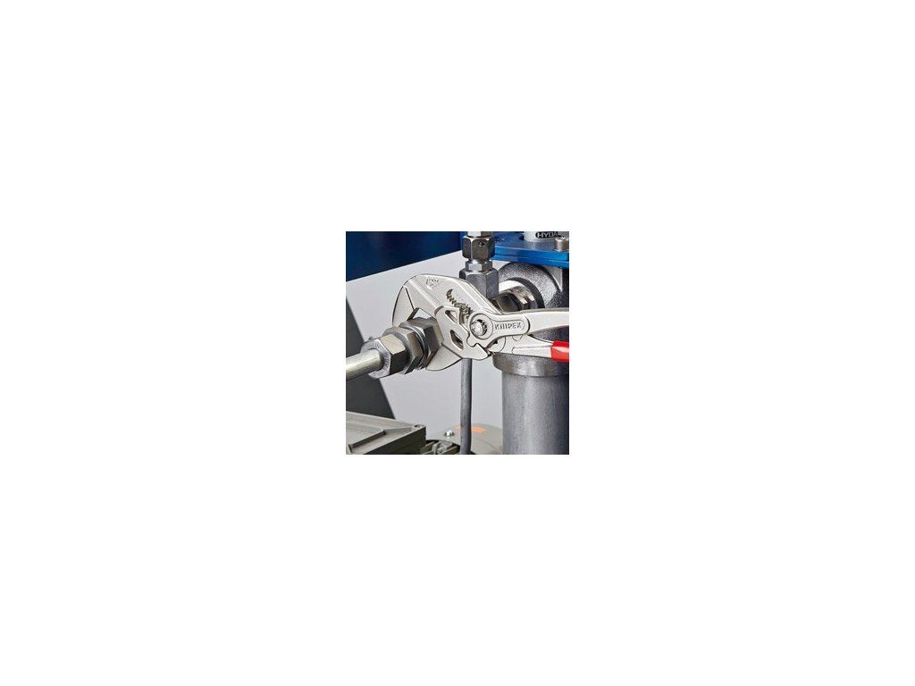 - Hladké čelisti pro šetrnou montáž povrchově zušlechtěných armatur - práce přímo na chromu!