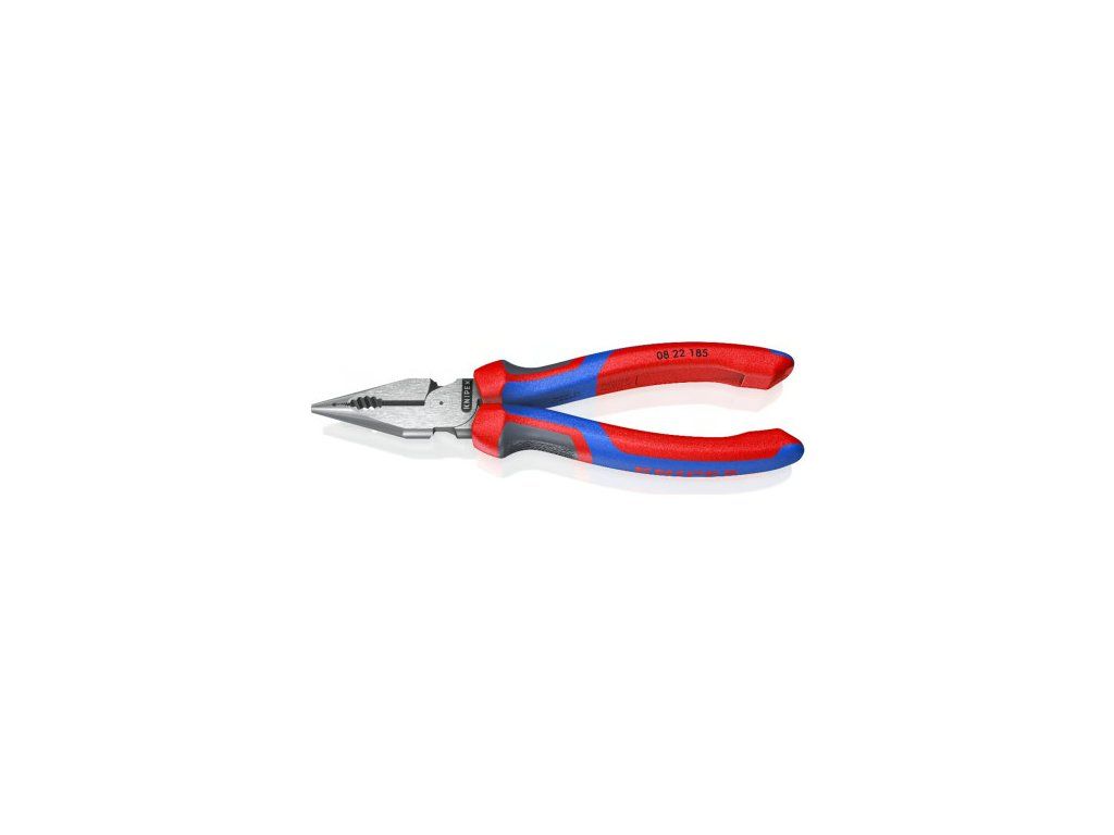 Jednoduché střihání díky vysoce přesazenému silovému kloubu Velmi praktické: ideální pro práce v těžko přístupných oblastech díky úzkému tvaru hlavy se špičatými čelistmi (velmi odolné proti zkroucení) Pro všechny běžné instalační práce a opravy. Vyfrézovaná drážka v oblasti uchopení umožňuje bezpečné držení a tahání malých dílů jako hřebíků, kolíků a čepů Spolehlivé a univerzální úzké ploché kombinované kleště na cesty S břity pro měkký, středně tvrdý a tvrdý drát Dlouhá životnost a stabilní hroty Břity doplňkově induktivně tvrzené, tvrdost břitů asi 61 HRC Komfortní rukojeť: sestává ze tří ergonomických komponent pro optimální manipulaci a má dvě rozhraní KNIPEXtend pro rozšířeníDoplňkové parametry
