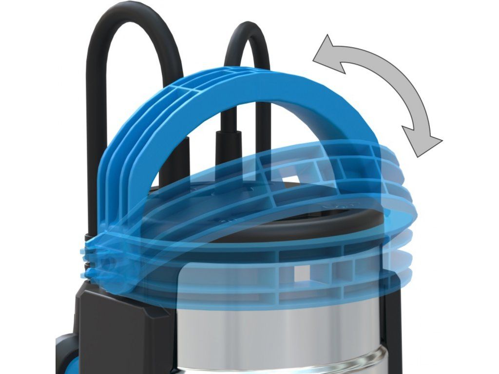 Konstrukce: nerezová hřídel motoru, keramické těsnění, oběžné kolo z termoplastu (NORYL®), sklápěcí držadlo.