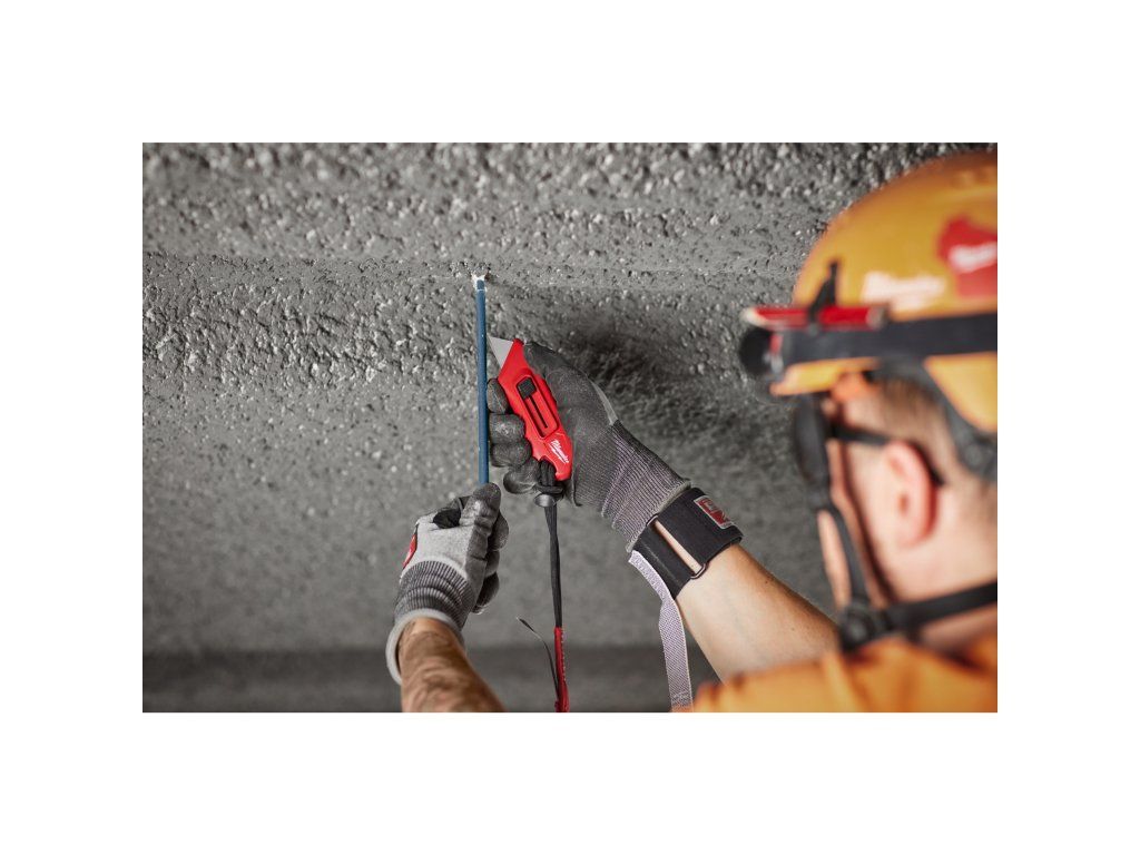 - Otvor na závěs nářadí pro snadné připevnění k bezpečnostnímu rámu Milwaukee, který umožňuje použití ve výškách.