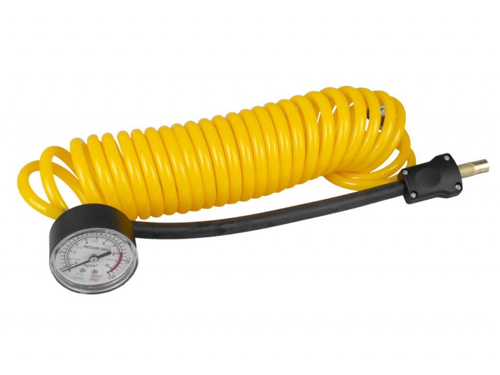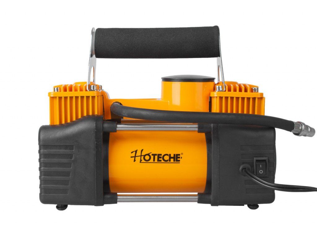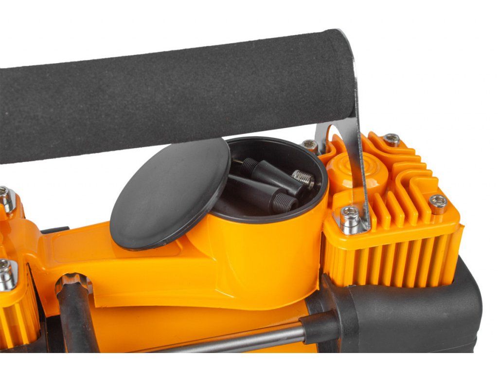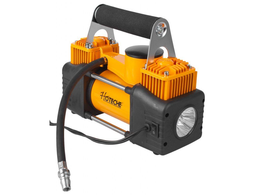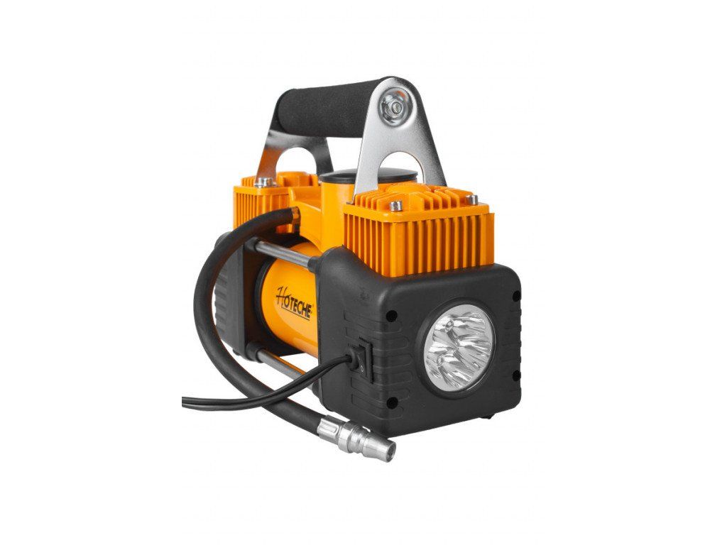 Přenosný vzduchový kompresor s napájením 12V a konektory přímo na baterii automobilu, které jsou jištěny pojistkou proti přepětí. Kompresor je vhodný např. k huštění pneumatik osobních automobilů, dodávek i vozů 4x4, vyvine max. tlak 150 psi (10,3 bar).