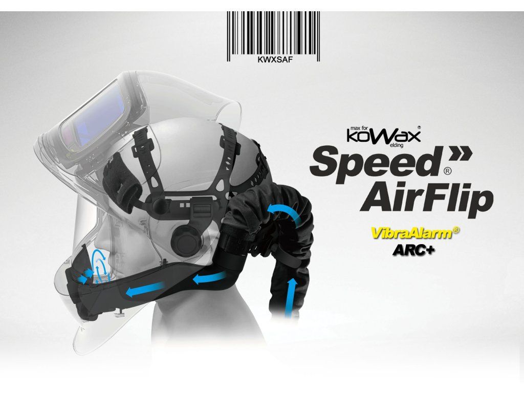 Nová špičková filtračně ventilační jednotka KOWAX® Speed Air® kombinovaná s novou kuklou s odklopným filtrem. KOWAX® FlipARC+ nabízí excelentní ochranu proti zplodinám vznikajícím při svařování, broušení apod.