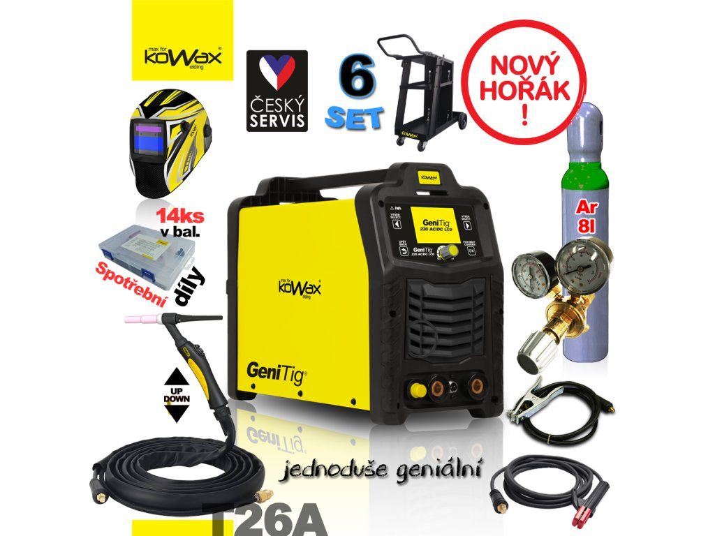 KOWAX Svářecí invertor GeniTig® 220AC/DC SET6 (AC/DC TIG/MMA) KWXSTGT220ACDC_S06