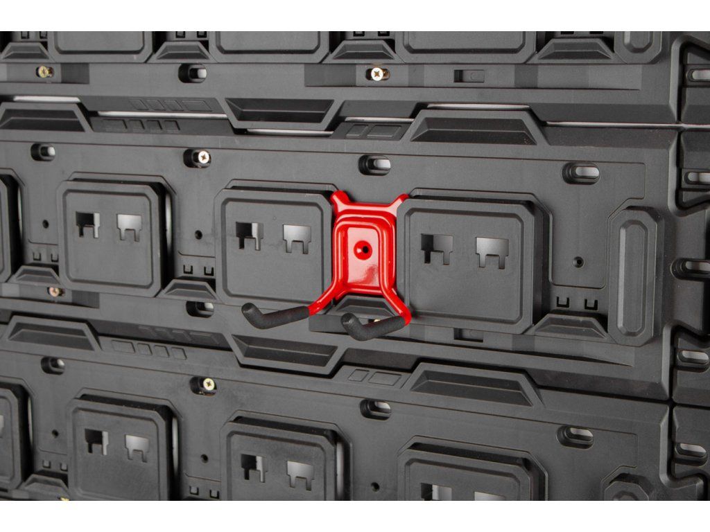 Krátký dvojitý hák ve tvaru L je perfektním doplňkem k závěsné desce MW7000. Poskytuje pevné a stabilní uchycení pro různé nářadí a příslušenství jako jsou sekery, palice nebo koště, lyže, koloběžky a jiné. Instalujte snadno kamkoliv do závěsné desky.