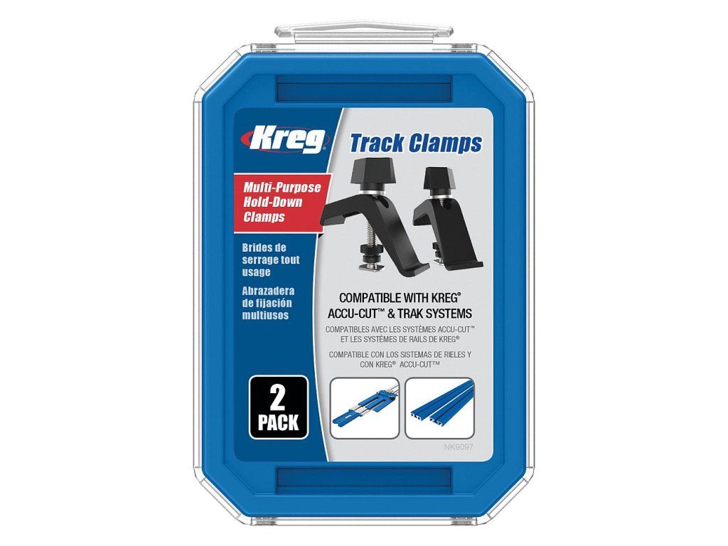 Kreg svěrky slouží pro připevnění vodící lišty KMA2700 Accu-Cut pomocí drážky na spodní straně lišty a poskytují dodatečnou přídržnou sílu pro vodící profily Kreg.