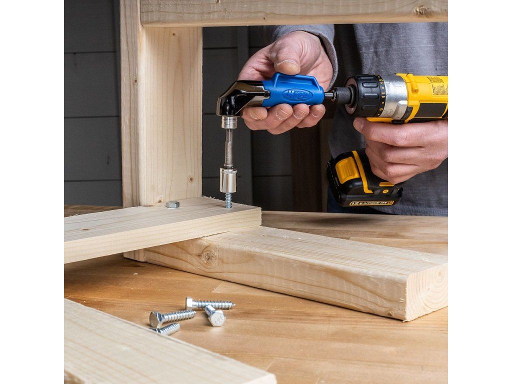 Kreg Úhlový nástavec na bity 90° Vám umožní šroubovat v místech, do kterých běžně s vrtačkou nedosáhnete. Nástavec je dodávaný s 75 mm magnetickým čtyřhranným bitem, který zapadne do hlavy šroubu a nevyklouzne - takže Vám usnadňuje šroubování skrytých šroubových spojů. Nástavec lze také použít s jakýmkoli bitem s šestihrannou stopkou. Díky ergonomickému designu nástavec pohodlně uchopíte jednou rukou, zatímco druhou ovládáte vrtačku. Při šroubování v těsných místech se na Kreg Úhlový nástavec můžete vždy spolehnout.