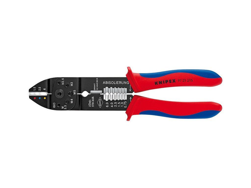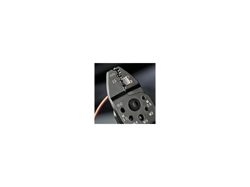 - K stříhaní kabelů, odizolování drátů a lisování izolovaných a neizolovaných kabelových ok a konektorů a otevřených konektorů