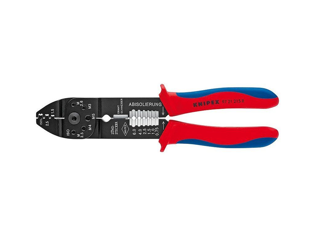 - K stříhaní kabelů, odizolování drátů a lisování izolovaných a neizolovaných kabelových ok a konektorů a otevřených konektorů
