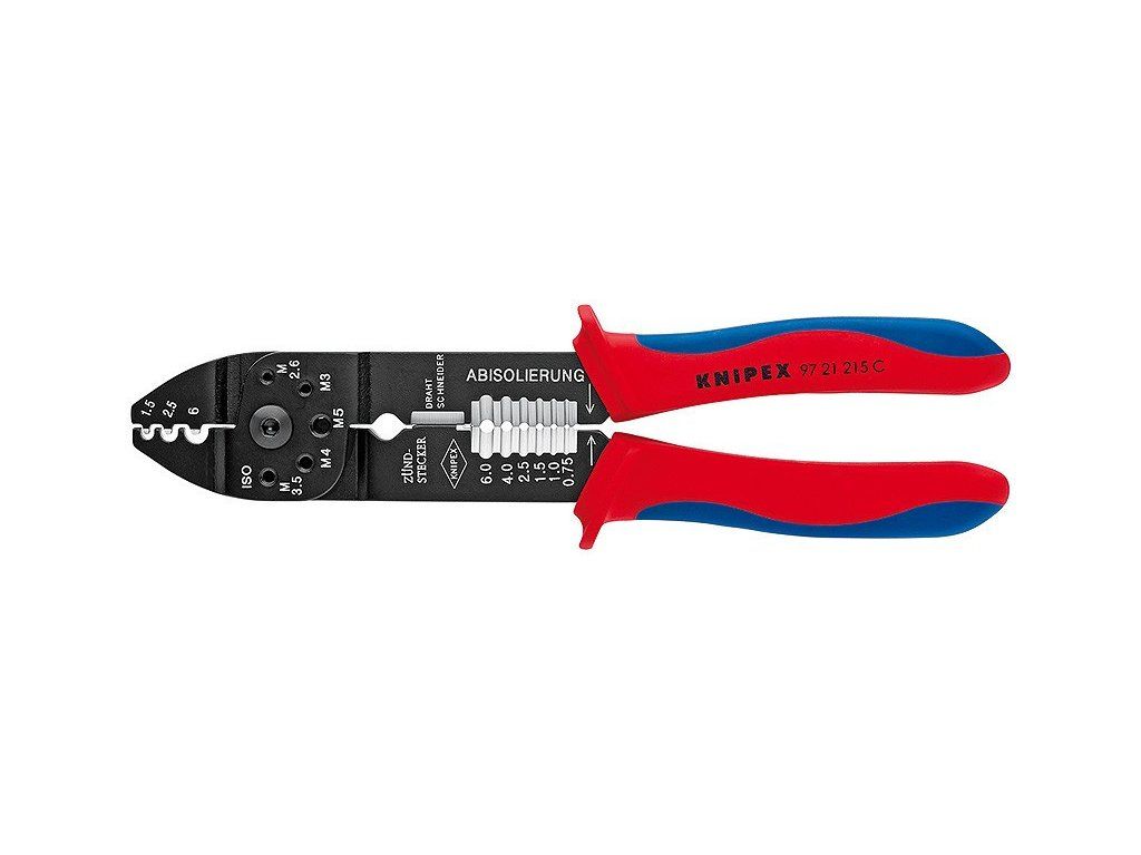- K stříhaní kabelů, odizolování drátů a lisování izolovaných a neizolovaných kabelových ok a konektorů a otevřených konektorů