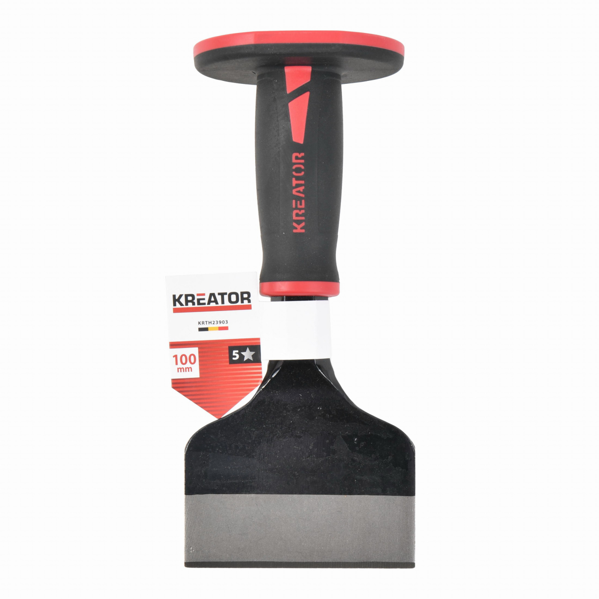 Tento sekáč KRTH23903 z naší řady Kreator s širokou 100mm hlavou je ideální pro větší sekací projekty, např. odstraňování dlaždic a spár. Horní část rukojeti má široký okraj, který chrání ruku, kterou držíte sekáč. Měkká protiskluzová rukojeť zajišťuje pevný úchop.