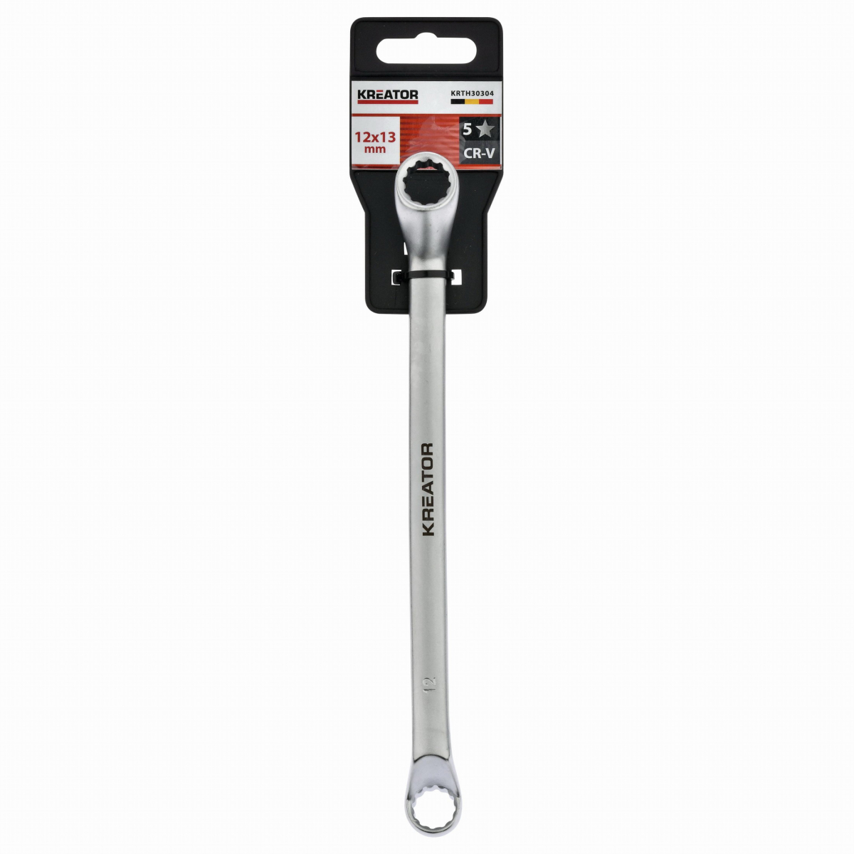 Tento dvojitý očkový klíč KRTH30304 z naší řady Kreator má délku 165 mm a je vyroben z vysoce kvalitní chrom-vanadiového slitiny. Osazené kroužky zajišťují efektivnější přenos vyvíjené síly. Konce mají otvory různých velikostí. Jeden má velikost 12 a druhý 13 mm.