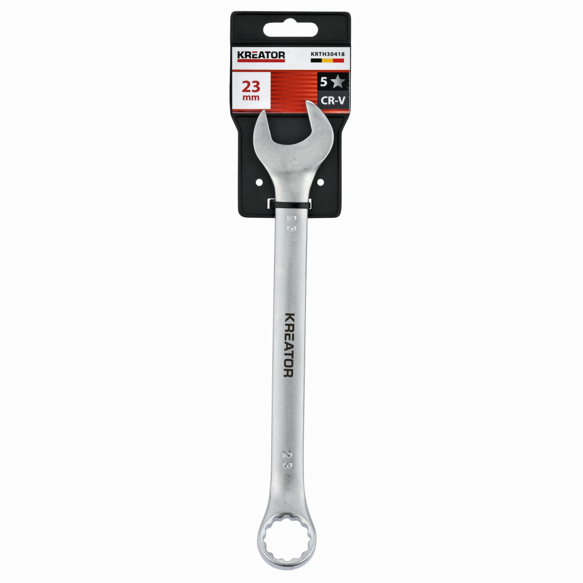 Tento kombinovaný očko / otevřený klíč KRTH30418 od Kreator je vyroben z robustní chrom-vanadiové slitiny. Eliptický tvar dříku zajišťuje lepší přenos síly. Je dlouhý 265 mm a má průměr 23 mm.