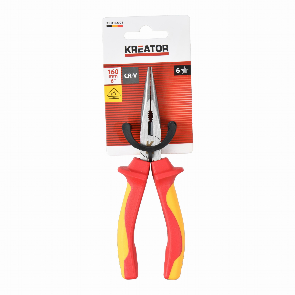 Tyto kleště s prodlouženými čelistmi KRTH62904 z naší řady Kreator jsou izolované a certifikované VDE. Chrání před úrazem elektrickým proudem až do 1 000 V, takže je můžete bezpečně používat k držení, odizolování a krimpování při jakémkoli projektu s elektřinou. Měkké gumové rukojeti s protiskluzovou úpravou poskytují pevný úchop a pohodlí uživatele. Kleště mají délku 160 mm.